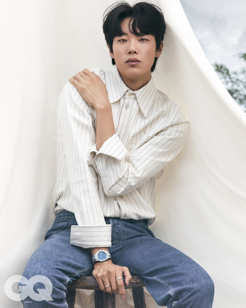 1) 가을의 매 마른 갈대밭을 배경으로 먼 곳을 바라보는 류준열. 쇼파드의 워치 메이킹에 대한 열정과 전통, 혁신이 만나 탄생한 ‘L.U.C 1937 Classic 시계’를 착용했다.